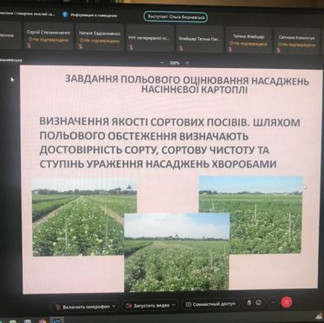 6 травня 2024 року наукові співробітники Інституту картоплярства НААН брали участь в онлайн-нараді (на платформі Webex), організованої для керівників і спеціалістів державних установ відділів визначення посівних якостей насіння і товарних якостей садивного матеріалу картоплі.